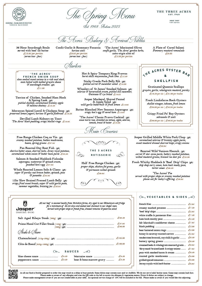 Set in the rolling, green Pennines, the Three Acres is a welcoming country inn and restaurant, which has been owned by the Truelove family for over 50 years.