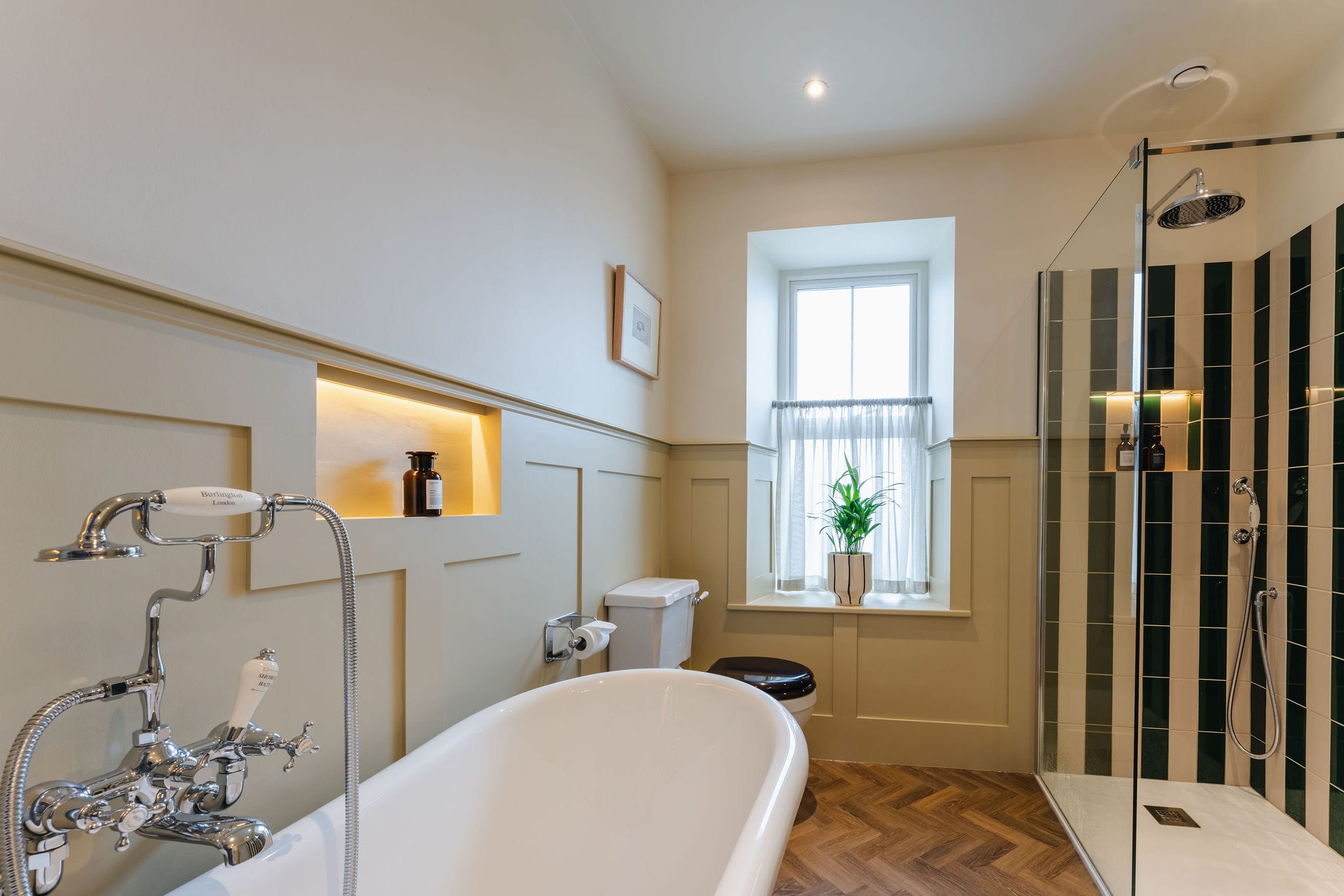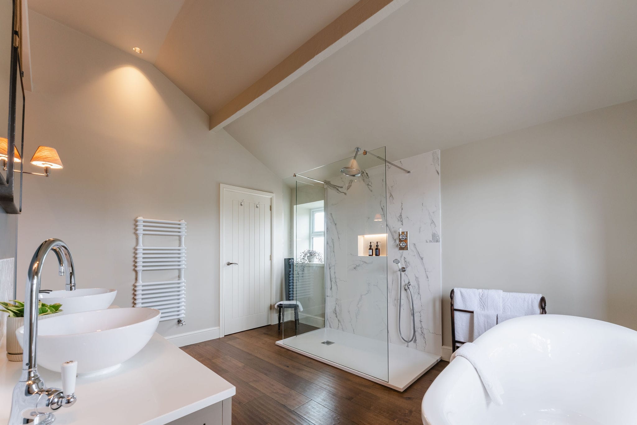 Rest your head and enjoy a characterful bedroom inspired by the incredible moorland setting that surrounds The 3 Acres. Unique, antique pieces have been lovingly curated alongside modern creature comforts to ensure a calming countryside stay – all complemented by sumptuous, 100% wool Floks Home mattresses for the most comfortable night’s kip.